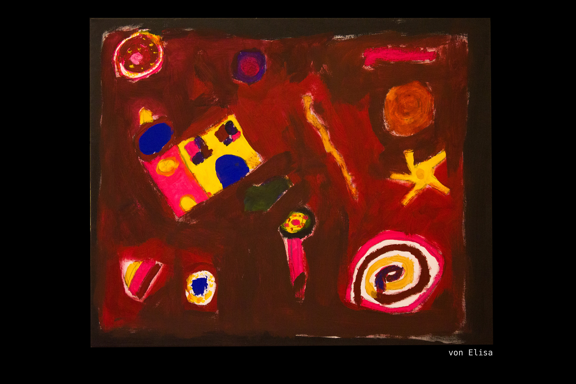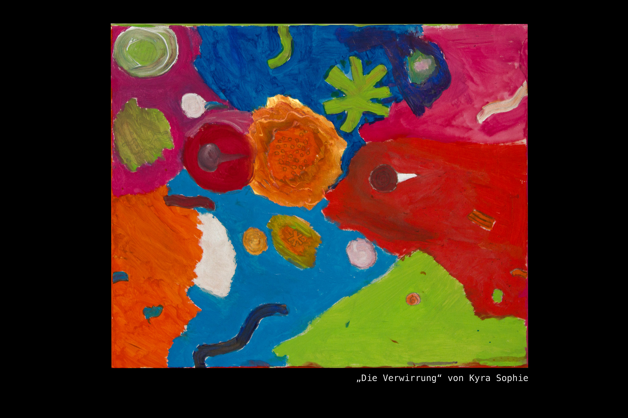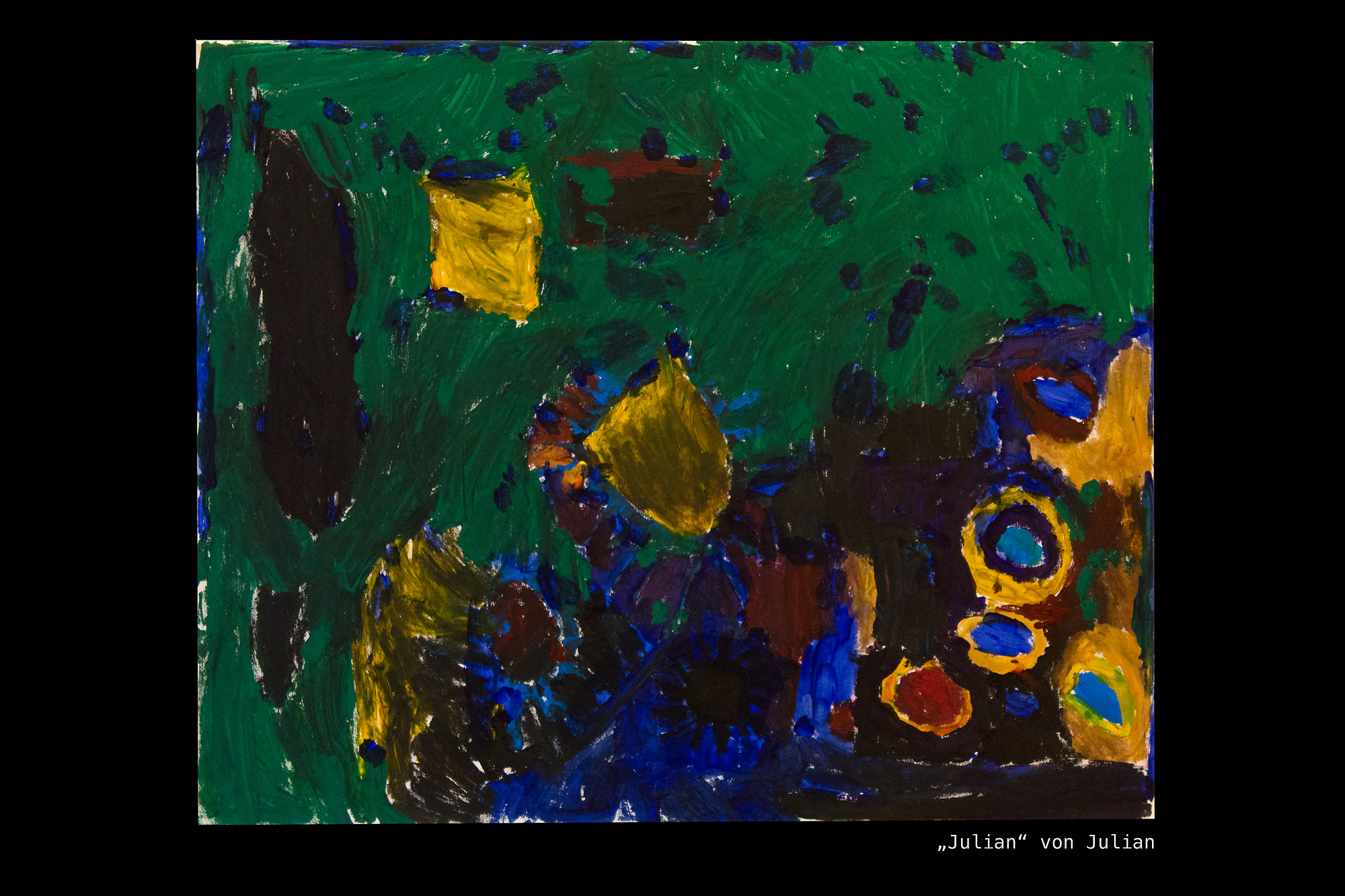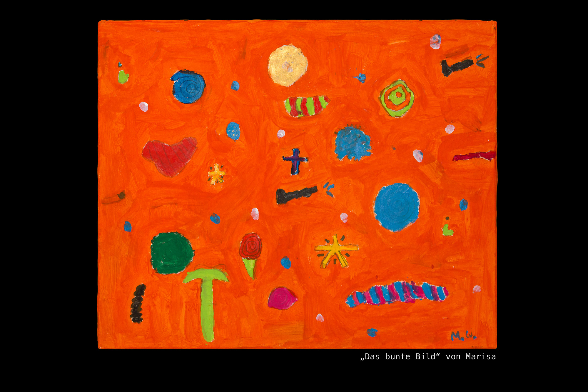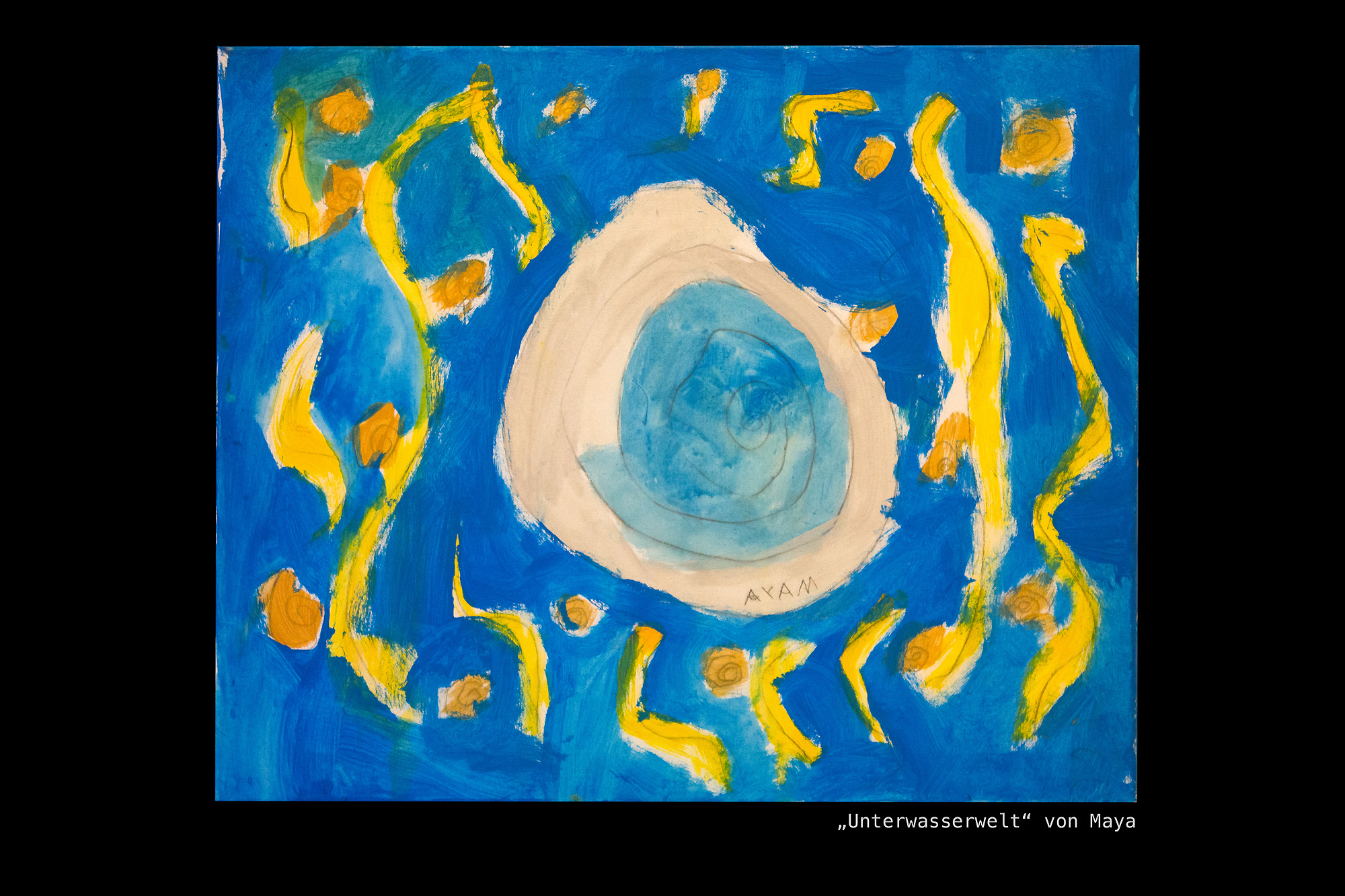 Am Ende des Malens fehlte nur noch die Signatur. Nach ein paar Anregungen fingen die Kinder sofort an, miteinander an zu besprechen, welcher Name oder welche Initialen unter ihre Bilder sollen.