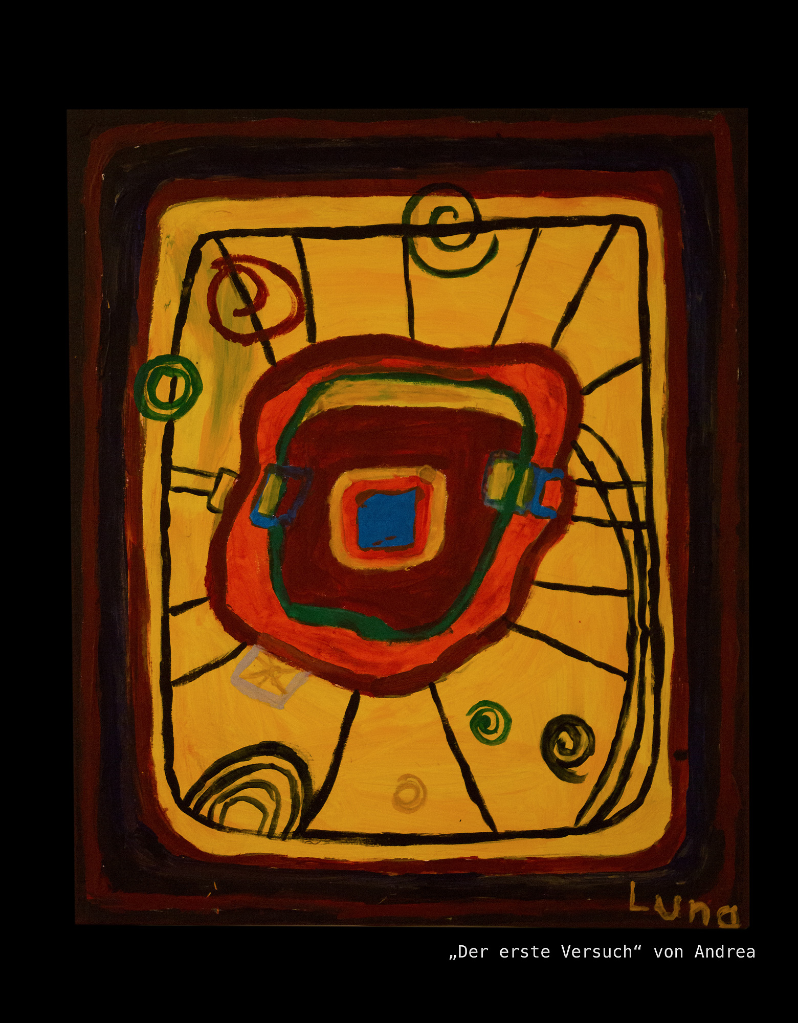Dabei haben die Kinder schnell festgestellt, dass Hundertwasser viele Kringel und in Schneckenform malt und dass er oft farbige Flächen mit schwarz absetzt, um die Leuchtkraft seiner Farben zu verstärken.