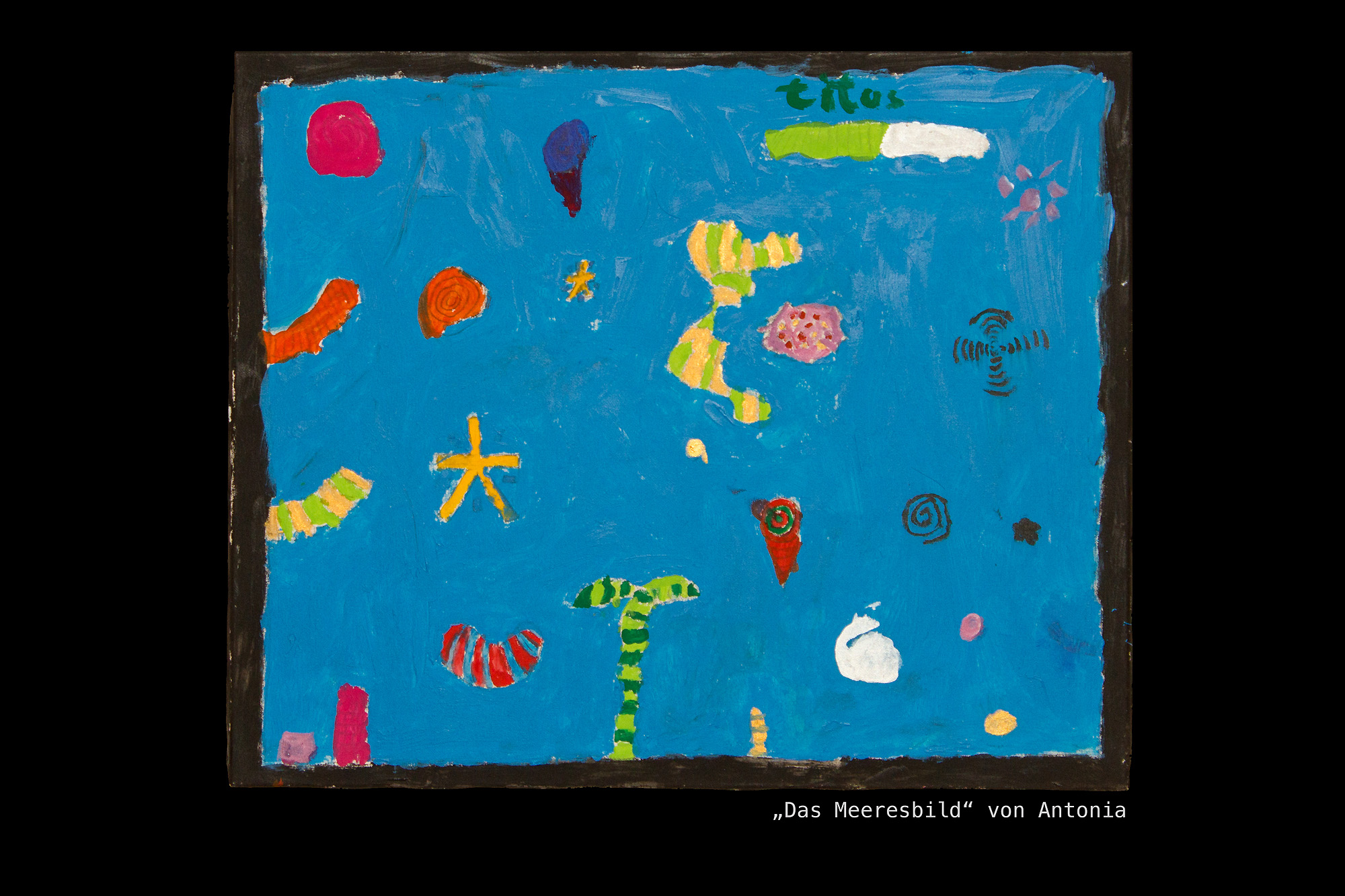 Als das erledigt war, sollten sie sich dann möglichst noch einen Titel für ihr Bild ausdenken und dies dann auf ein Kärtchen schreiben.